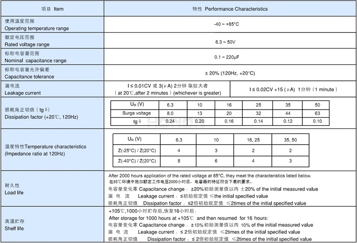 • 工作電壓:6.3~50